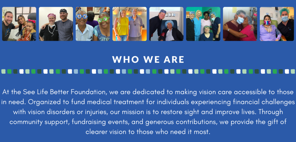 People are the driving force behind the establishment of the See Life Better Foundation. The doctors of Mann Eye Institute noticed a growing need for working Americans to bridge the gap between what they can pay for with insurance and savings versus the cost of services. The See Life Better Foundation assists the patients with this financial need so these hardworking people can get the treatment they need in order to continue working and living their lives. Since the start of 2024, approximately $8000 has gone to help 10 patients SEE LIFE BETTER.